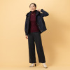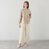 ウエストは締め付け感の少ない総ゴム仕様で楽な着用感ながら、ゴムじわやダボつきが目立ちにくく、すっきりとした印象。
