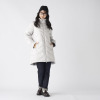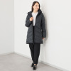 柔らかく軽いダウンコートにぴったりの生地で、はっ水性と防風機能を持たせました。