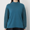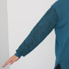 綿100%のシャリ感のある上品なニット素材をメインに、袖を印象的なレースで切り替えたデザイン。
