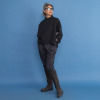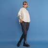 それとは対照的に膝から下を極端に絞ったテーパードシルエットにすることで、下半身を細長く見せる工夫がほどこされています。