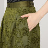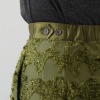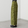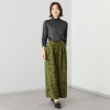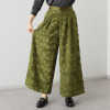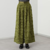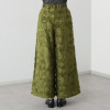 脚の形が出にくいワイドシルエットで体形をふんわりとカバーしながら、上品な光沢があるサテン素材をウエストに用いることでスタイリングを格上げ。