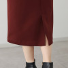 高めに設定されたウエスト切り替えとスカート部分に効かせたステッチが縦のラインを強調し、すっきりとした印象を演出。