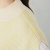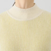 確かに首元チクチクです。耐えられるか?私?ですが、返品しない選択をしました。オフイエローの色の柔らかさとデザインが気に入ったからです。ハイネック専用になるのは惜しいです。ハイベックでまずはお洗濯してみましょうか。縮まずふわふわになるよう祈ります