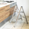 プロの足元を支える老舗国内脚立メーカーが手がける高品質ステップです。収納時の厚さはわずか約4.8cmとスリム設計で、わずかな隙間にすっきり収まります。使う時は天板を押し倒すだけでロック完了、収納時は片手で天板を持ち上げるだけで折りたたみ可能。約幅33×奥行き26cmの広々としたステップ面は足裏全体を支え、波型形状で滑りにくい設計。側面からビスが見えない美しい作りで、インテリアとしても映えるデザイン性。細部にまでこだわった素材と形状により、道具としての機能性と洗練された美しさを兼ね備えています。折りたたみ時の緩衝音を軽減するクッション材も装備した心配りも魅力です。