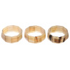 水牛のアクセが好きで沢山買いました。しかしこのバングルは縦の端、隣との境の線がほとんどのパーツがカットしてからあまり研磨されてないのかガタガタのラインがでてます。ゴムも堺目がガタガタの為か又別の為か所により細く裂けてる所がありました。ちょっと興醒めの為返品させていただきます。