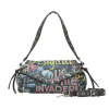 グラフィティスタイルのプリントと、部分的にほどこされた編み込み風のディテールが特徴的。