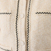 ネックラインから前立てにかけてとポケット口にはファンシーなブレードテープをあしらうことで、立体的な表情を添えました。