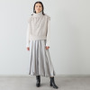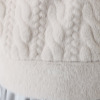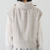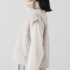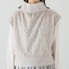 ケーブル編み風のエコファーを身頃にあしらい、襟ぐりと裾に無地のエコファーを組み合わせたデザイン。