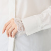 袖口にあしらったレースは取り外しが可能で、レースを付ければエレガントな印象に、外せばクリーンでシンプルな雰囲気に。