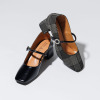 すっきりとしたスクエアトゥがクラシカルな印象を与えるメリージェーンパンプスです。