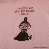 トップスには立体感豊かなサガラ刺しゅうでキャラクターが表現され、英文のセリフも刺しゅうで添えられたデザイン。