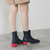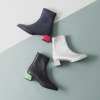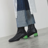 革巻きピースとバイカラーヒールがアクセントとなり、シンプルながらも個性的な魅力を放ちます。