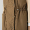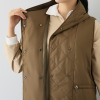 薄くて軽量なポリエステル素材を使用したキルトロングベストです。