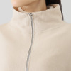 ファスナーを上まで閉めると、襟がオフタートルのように立ち上がり、首元まで暖かく過ごせます。