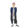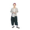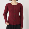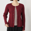 前立てのボタンを閉めてシンプルに、開けてカーディガン風の着こなしを楽しんでも素敵です。