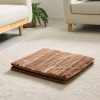 特殊な極細扁平糸による光沢としっとりとした手触り、バックプリントで根元の影をつけた奥行ききのある色合い、さらに型押し加工による自然な毛の流れが特徴です。