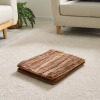 特殊な極細扁平糸による光沢としっとりとした手触り、バックプリントで根元の影をつけた奥行ききのある色合い、さらに型押し加工による自然な毛の流れが特徴です。