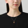 チェーンの長さはショートタイプで、丸首のカットソーやシャツの首元に合わせるのがおすすめ。