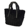 季節感たっぷりのふわふわファーを縦柄に配した、手提げバッグです。
