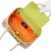 コンパクトながらもしっかりとしたマチがあり、ロングウォレットや化粧ポーチも収納可能。
