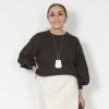 袖はふんわりとしながらも、しなやかさがあるため、コートなどのアウターとの重ね着もスマートに決まります。
