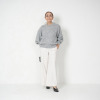 ラウンドネックにたっぷりとした身幅、ドロップショルダーからのボリューム感のある袖という特徴的なデザインが目を惹きます。