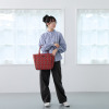 たまたま見つけたルートートのバッグ。冬用に久しぶりにキルティングも良いかなぁと購入。ネイビーにしましたが、黒?濃紺?のような濃い地の色にシックなチェックなので、どんな色のアウターにも合いそうです。[ミニトート]と言っても、私はなで肩でいつも手持ち使いなので程良いマチもあり充分な大きさでした。ただ、キチッと薄く畳まれて届いたので、底板をはめてもワキの強い折り目が取れなさそうで残念。それから、私だけだとは思いますが、持ち手は芯ごとガッチリ縫い付けてはありますが、その縫しろが浅くてやや不安。内ポケットは深く、フチは額縁?の様にしっかり縫製されていて、ただ折り返して縫っただけのペラペラとは違い、出し入れし易いのが有難い。持ち手の点で星マイナス1にさせていただきますが、ステキな柄で買って良かったです。