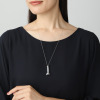 エレガントな存在感を際立たせるよう、シルバー製のロングネックレスをお付けしました。