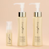 <キュアフォルテ>より、シャンプー後、軽くタオルドライした髪に適量を塗布し、髪に潤いとツヤを与えるアウトバスとして使える、洗い流さないヘアオイル美容液75ml×2と、10mlサイズのセットです。