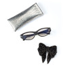 フレームにはプレシオサ社製クリスタルガラスが片側5個、合計10個セッティングされ、漆黒のフレームにきらめきとラグジュアリー感をプラス。