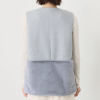 毛足が短くなめらかな風合いの高級感あるフェイクファーと、メルトン風のジャージー素材を組み合わせたジレです。