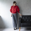 ゆとりあるシルエットと袖幅が適度なふんわり感をもたらしつつ、長めに取った裾と袖口のリブがモード感ある雰囲気に見せてくれます。
