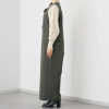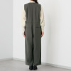ゆったりとした身幅と適度にワイドなシルエットながら、少し高めにしたウエスト位置とV字のフロント開きで縦ラインを強調し、スッキリしたモード感ある大人シルエットに仕上げました。