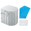災害時やアウトドアで心強い組み立て式トイレ。コンパクトに収納でき、いざという時に簡単セットアップ。