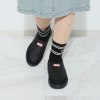 リサイクルポリエステル素材を一部に用いた、靴下とスリッパが一体化した斬新なデザイン。