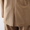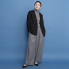 ウールをベースに、トリアセテート、ナイロン、ポリウレタンをブレンドした、アムンゼン生地を表地に使用。ハリコシがあるのにドレープ性も備え、細かく均一な梨地状の凹凸があり、強い光沢が出にくく、動きで生地の見え方変わりにくいため表情が均一なため、フォーマルな席にも取り入れやすい素材です。また素材の特性によりシワになりにくい点が魅力。