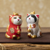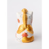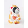 さらに、顔は末広がりに通じるハチワレ、鼻には隠れハート、四つ銀杏紋(いちょうもん)や雲取り紋など全身がおめでた尽くしのデザイン。