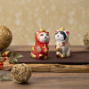 東京藝大出身の造形作家エサシトモコ氏が原型を制作し、<株式会社MORITA>が生産する木彫り像「天馬猫」紅白2体セットです。