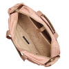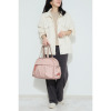 曲線を生かしたフォルムが、ソフトな印象を演出します。前面のファスナーポケットは、底につまみをほどこして収納力をアップさせたつくり。後面に配したあおりポケットは、さっと取り出したい物の収納に便利です。さらにキャリーカートのバーを通すことができるつくりで、キャリーカートへの取り付けがスムーズ。