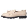 タッセルが取り外しできる2ウェイデザインで、気分や装いに合わせて表情の変化が楽します。低反発クッション入りインソールが足裏の負担を軽減し、程良い高さのヒールが脚をすっきり見せながら安定感を確保。アウトソールは、凹凸を配した滑りにくいつくりです。また、しなやかな屈曲性があり、スムーズな足運びをサポート。