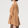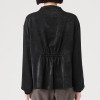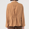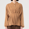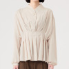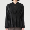 フロントのタックデザインとウエストシェイプが、絶妙なバランスで立体感を生むブラウスです。