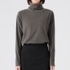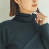 ふんわりとした肌触りと程良い厚みの吸湿発熱素材で寒い季節も暖かく。重ね着しやすいすっきりシルエット。