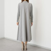 スタンドカラーは、前中心で少し重なるように交差させることで首周りをシャープに演出。