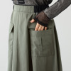 腰高位置に2つのフラップ付きのワークポケットを配しており、実用性はもちろん、デザイン全体を引き締めるポイントにも。