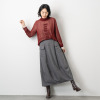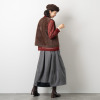 バレルシルエットのスカートは初めて購入しました。ゆったりしているけどめくれあがる心配もなく、光沢が上品で印象も重くなり過ぎず低身長の私にピッタリでした。生地はしっかりしているけど重くなくて風を通さないのでとても温かいです。強風な日は寒さ対策で下にゆったりしたズボンを重ねてもラインが変わることなく履けて大満足です。ただ、リブ部分は毛玉になりやすそうなので身生地と変えずに作って欲しいです。