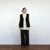 前中心はフェイクの前立てをあしらい、お腹周りがすっきりと見えるよう工夫しました。
