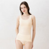 綿を高い混率で使用して編み立てた、成型仕上げのショーツです。綿の素材特性として吸湿性・吸水性・保温性・通気性があり、さらりとした快適な肌触り。丸編み(筒編み)のためサイドに縫い目がなく、やさしい肌当たりも特徴です。ウエストと裾部分はゴムを使用せず生地を折り返し、程良いホールド感を実現。