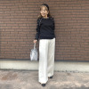 夜空の星のように輝くパールビジュウが上品。シンプルなボトムスと合わせるだけで、華やかな高級感を演出。