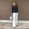 正面からも横からも美しいシルエットが保たれるよう計算されたシルエットで、広がりすぎない裾幅と絶妙なフレアーラインがどんなトップスにもマッチ。