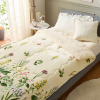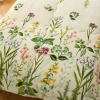 フランスのデザインスタジオの図案をアレンジし、繊細なタッチの草花が足元から胸元に向かって、風に吹かれるようにやさしく舞い上がっている様子を描き、ハーブのような自然で爽やかな香りが漂ってきそうな、ボタニカルデザインに仕上がりました。